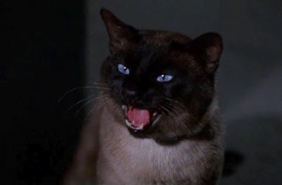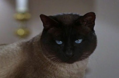 DESCRIPTION: Seal-Point Siamese. [ETA Subject’s Asian ancestry and possible links to regimes in the Democratic People’s Republic of Korea (North Korea to you, Agent Kelso) and Myanmar require further investigation.] Eyes blue. Black fur streaked with tan and white. Exhibits enhanced abilities in areas of physical engagement such as leaping, prowling, hiding, scratching and miaowing; it has yet to be established whether or not subject underwent black ops training in REDACTED at REDACTED.