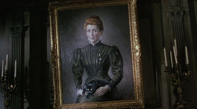 Later, Jean Simmons (who plays the besotted maid who blackmails Granger into taking her into his bed, with noirish consequences) picks it up and pets it.