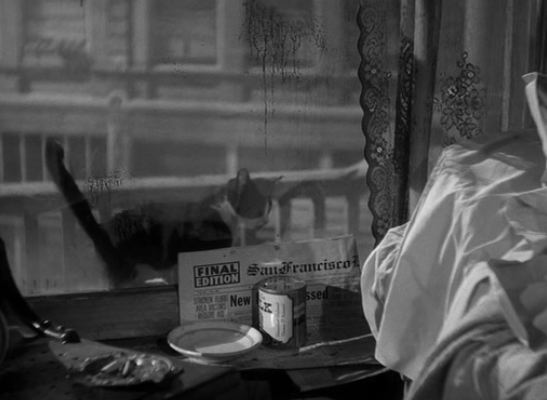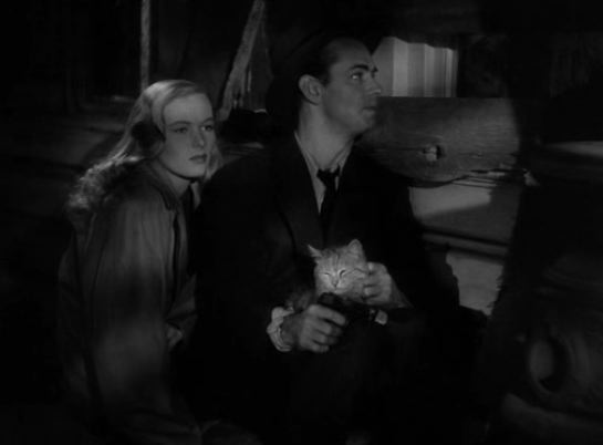 A little later on, he and Veronica Lake (playing a nightclub chanteuse who has been spying on the bloke who set Ladd up) are in hiding with another kitten. KITTY SPOILERS after the picture!