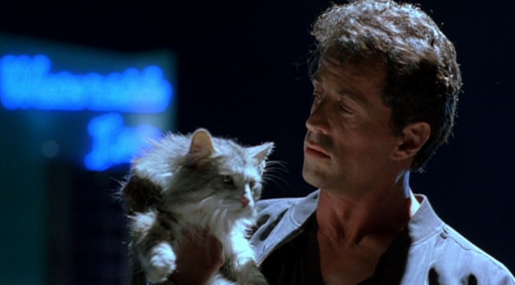 Dario Argento’s horror film is a major cat movie, and showcases cats in a variety of different settings. In Rome, music student Mark Elliot (Leigh McCloskey) gets a letter from his sister Rose in New York telling him about The Three Mothers, evil sisters who rule the world. Mark reads the letter during a class while Verdi’s Va, pensiero chorus from Nabucco is playing. Something is making him uncomfortable; he looks up to find a young woman (Ana Pieroni) and her fluffy cat staring at him intently.